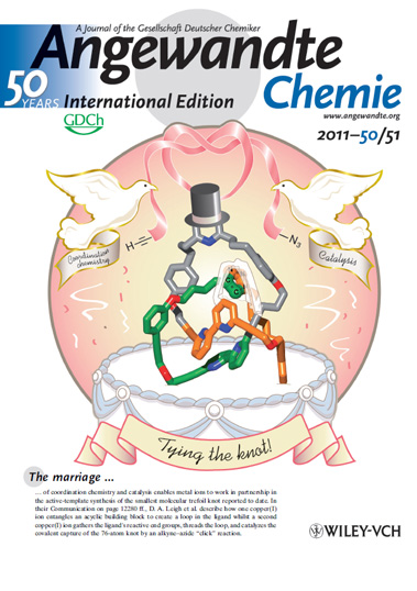 Recently, Professor David Leigh’s team (www.catenane.net) described the preparation of the smallest molecular knot made so far,[6] a 76-atom-loop trefoil knot, a synthesis made possible through the marriage of coordination chemistry and catalysis (see Figure 4). Now the Leigh group have succeeded in preparing a pentafoil knot (also known as a cinquefoil knot or a Solomon’s seal knot)—a knot with five crossing points that looks like a five-pointed star (Figure 3).[7] The structure of the knot (Figure 2 and here) was proven using data collected at the Diamond Light Source synchrotron by the Engineering and Physical Sciences Research Council (EPSRC) National Crystallography Service and solved by Academy Professor Kari Rissanen at the University of Jyväskylä (Finland).