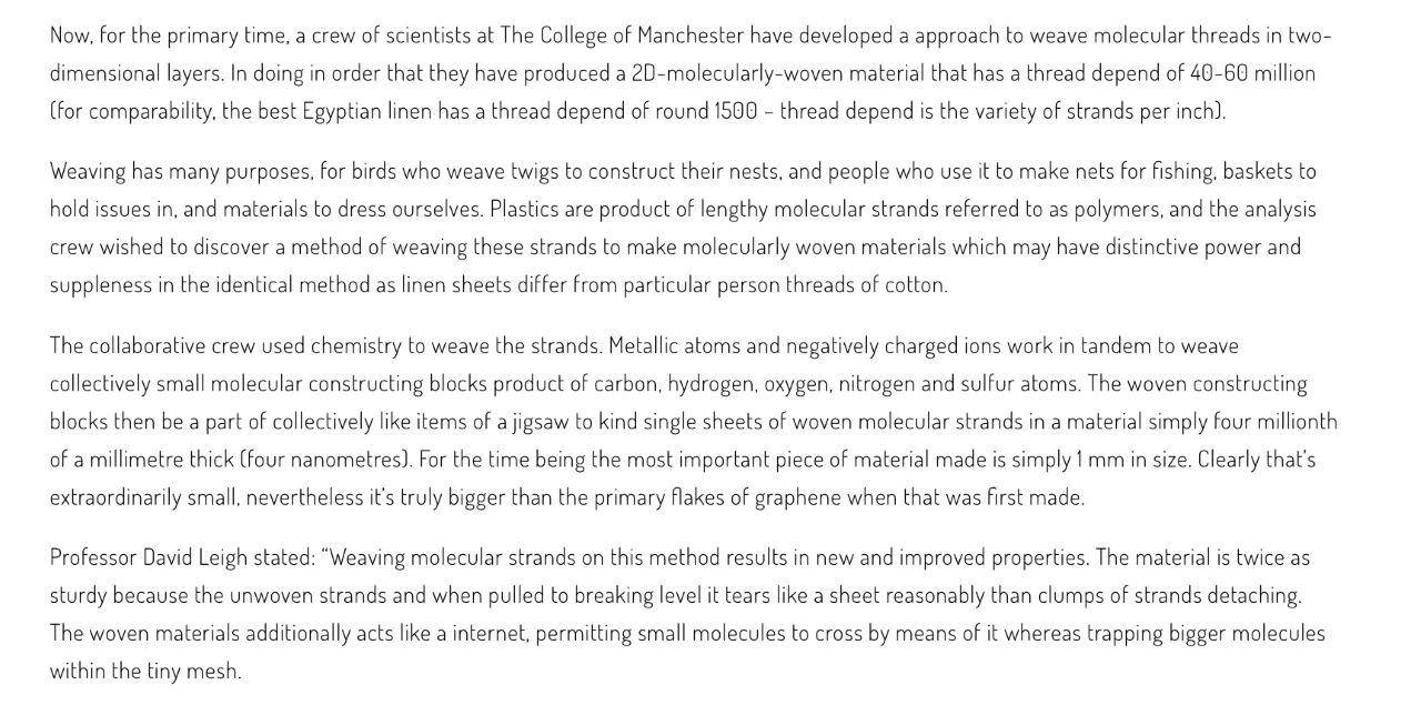 [For highlights of this paper see, ‘Weaving on the molecular scale’, Y Jiao and J F Stoddart, Matter, 4, 2582-2584 (2021); ‘Chemists weave molecular fabric’, Chem & Eng News, 98(48), (2020); ‘Scientists awarded a Guinness World Record for the finest woven fabric’, Phys.Org, 19 Jan 2021; ‘Molecular Art | Nature: From Chinese knot to 2D molecular fabric’ (in Chinese), X-Mol, 26 Dec 2020; ‘Scientists invent fabric 33,000 times finer than Egyptian linen using microscopic knots’, iNews, 19 Jan 2021; ‘Galardonados con un récord Guinness por el tejido más fino del mundo’ (in Spanish), EuropaPress, 19 Jan 2021; ‘Chemiker erzeugen das feinste Gewebe der Welt’ (in German), Scinexx, 21 Jan 2021; ‘Designing nanotechnology: Weaving molecular fabric’, Biocinematics, 18 Jan 2021; ‘Weaving a molecular patchwork’, Hot Topics, NatureAsia 17 Jan 2021; ‘Researchers demonstrate molecularly woven fabric’, Nanowerk News, 22 Jan 2021; ‘University of Manchester scientists awarded a Guinness World Record for the ‘Finest Woven Fabric’’, Cotton Sheets News, 22 Jan 2021; ‘Phil Kennedy Show’, BBC Radio Berkshire, 22 Jan 2021.]