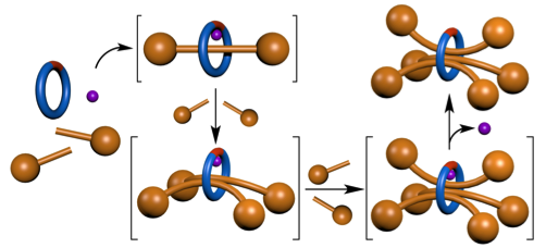- "En Route to a Molecular Sheaf: Active Metal Template Synthesis of a [3]Rotaxane with Two Axles Threaded through One Ring",